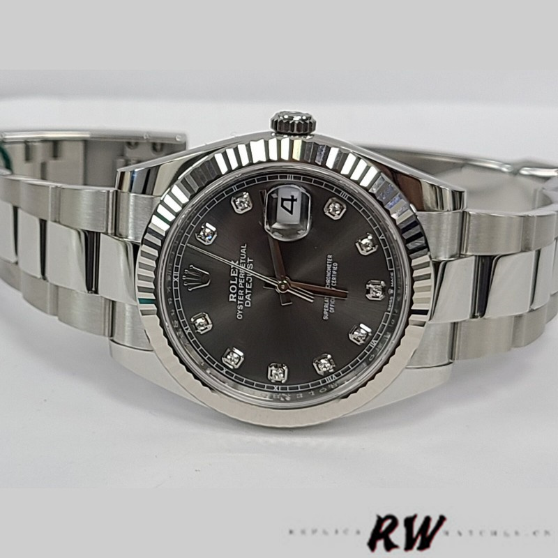 Rolex Datejust 126334 Fluted Bezel Dark Rhodium Grey Dial 41MM Mens Replica Watch
