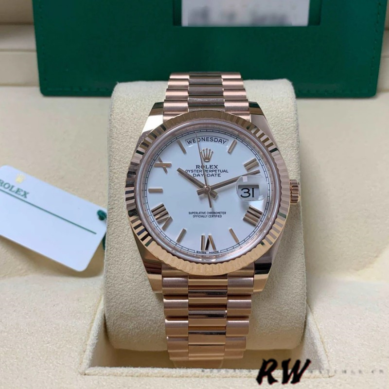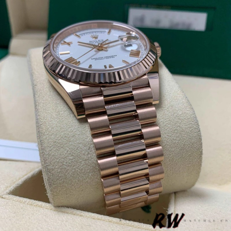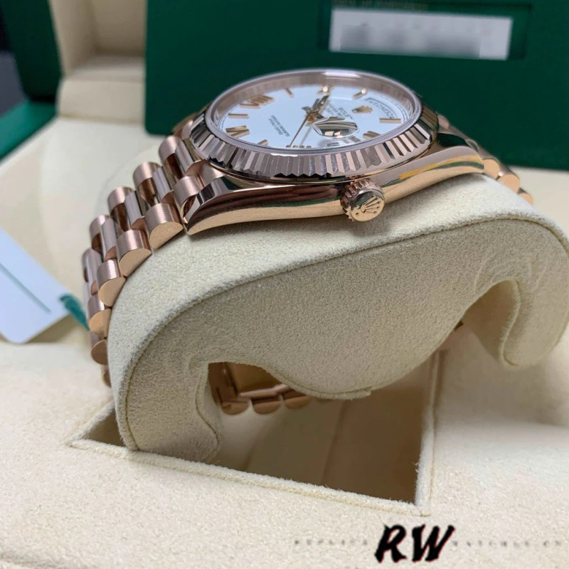 Rolex Day-Date 228235 White Roman Numeral Dial Fluted Bezel 40mm Mens Replica Watch