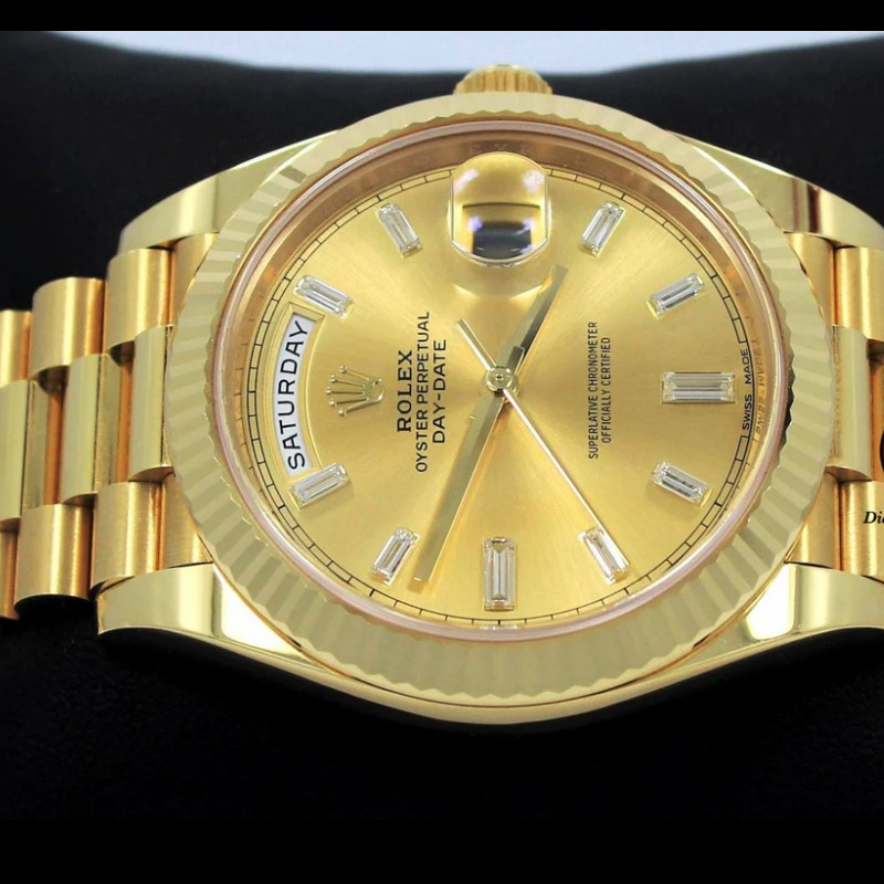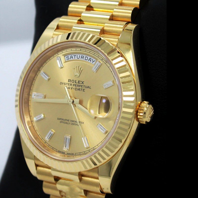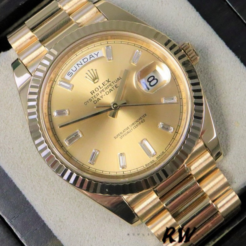 Rolex Day-Date 228238 Champagne Diamond Dial Fluted Bezel 40mm Mens Replica Watch
