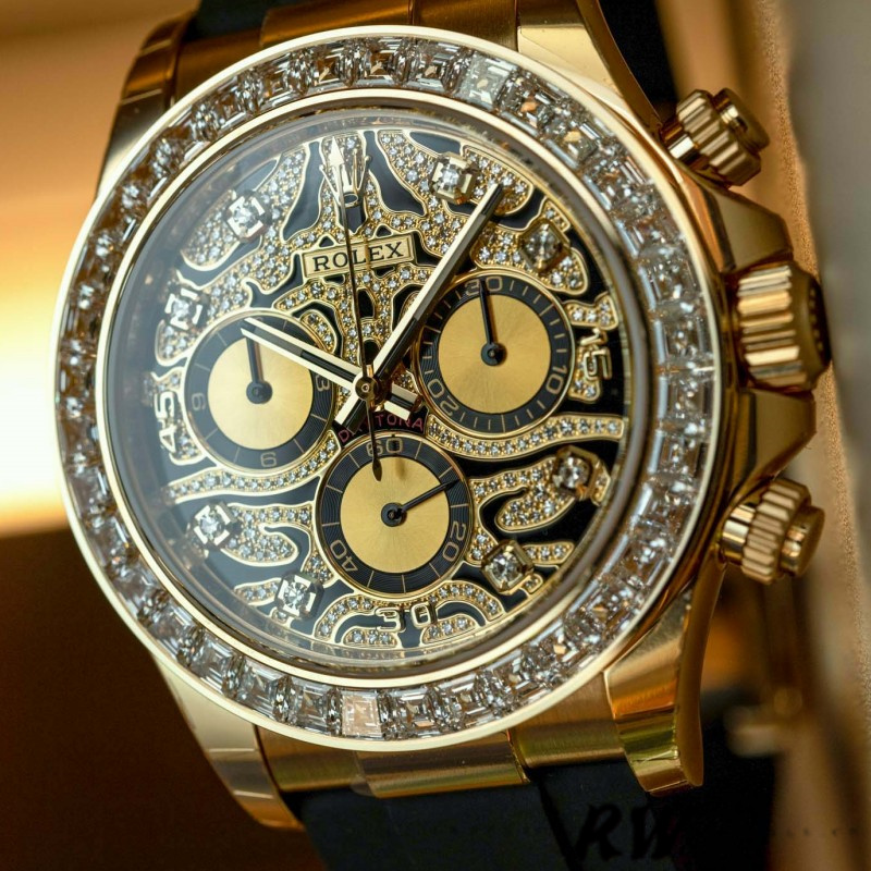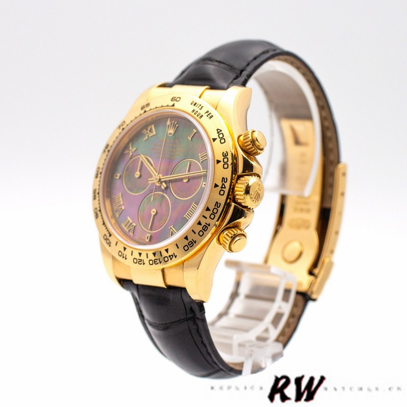 Rolex Daytona 116518 Yellow Gold Dark MOP Diamonds Dial 40mm Mens Replica Watch