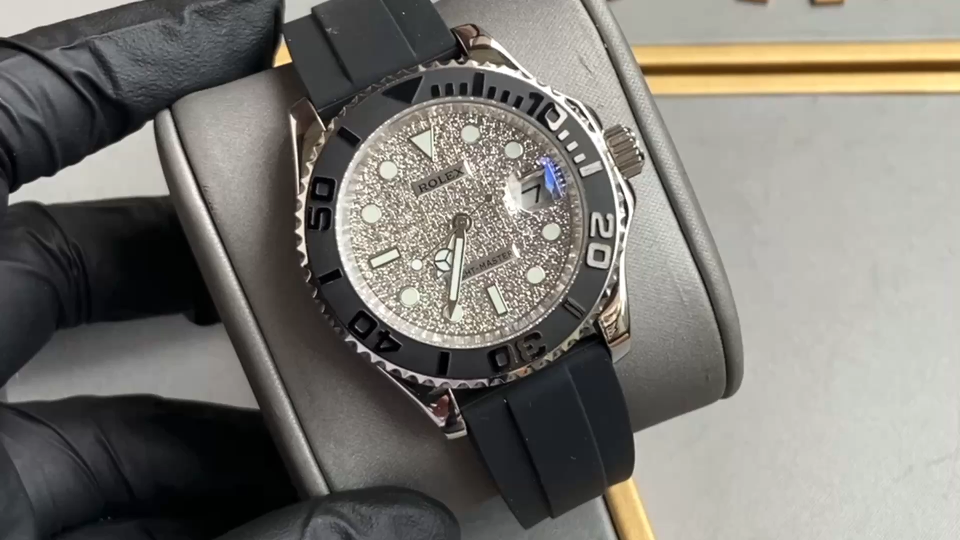 Rolex Yacht-Master II 126655 Diamond Pave Dial Rose Gold 40mm Mens Replica Watch