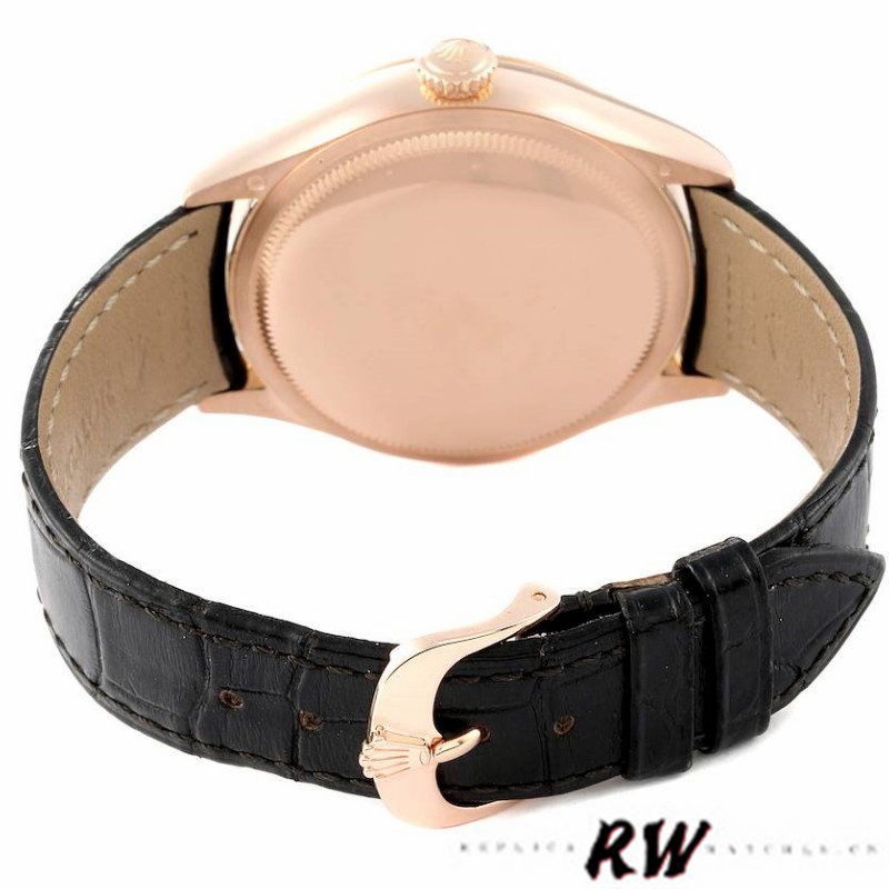 Rolex Cellini Time 50509 Brown Leather Strap Black Dial 39mm Mens Replica Watch